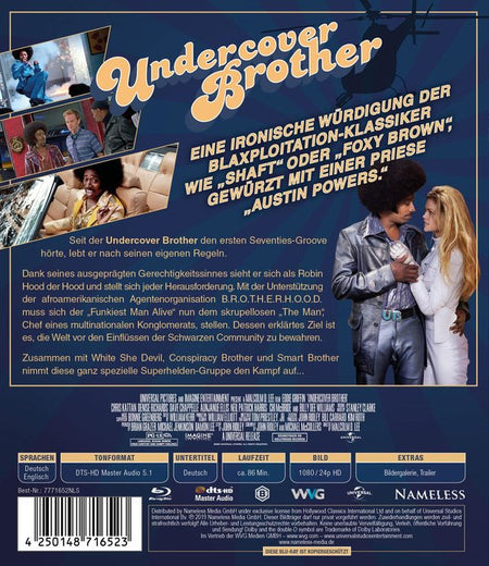 Seit der Undercover Brother den ersten Seventies-Groove hörte, lebt er nach seinen eigenen Regeln. Dank seines ausgeprägten Gerechtigkeitssinn sieht er sich als Robin Hood der Hood und stellt sich jeder Herausforderung. Mit der Unterstützung der afroamerikanischen Agentenorganisation B.R.O.T.H.E.R.H.O.O.D. muss sich der "funkiest man alive" nun dem skrupellosen "The Man", Chef eines multinationalen Konglomerats, stellen. Dessen erklärtes Ziel ist es, die Welt vor den Einflüssen der Schwarzen Community zu bewahren. Zusammen mit White She Devil, Conspiracy Brother und Smart Brother nimmt diese ganz spezielle Superhelden-Gruppe den Kampf auf... Eine ironische Würdigung der Blaxploitation-Klassikern wie "Shaft" oder "Foxy Brown", gewürzt mit einer Priese "Austin Powers".