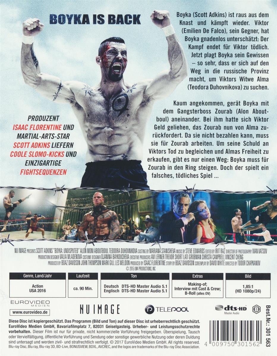 Er hat den PSC in Georgien gewonnen und ist endlich nicht mehr im russischen Knast. Boyka (Scott Adkins) ist wieder da. Und er kämpft, wie er immer kämpft. Bis zum bitteren Ende.