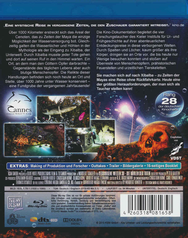 Möglichkeit der Wasserversorgung bot. Gleichzeitig galten die Wasserlöcher und Höhlen in der Mythologie als der Eingang zu Xibalba, der Unterwelt, durch die jeder Tote gehen musste, um auf seinen Ruf in den Himmel zuwarten. Ein Ort, an dem man den Göttern Opfer darbrachte - Gegenstände des täglichen Lebens, aber auch blutige Menschenopfer. Die Relikte dieser Handlungen befinden sich noch heute an Ort und Stelle, über 1000 Jahre unter Wasser konserviert – eine Fundgrube der vergangenen Jahrtausende! Wir begleiten vier Forschungstaucher auf ihrer abenteuerlichen Entdeckungsreise in diese verborgenen Welten. Durch Spalten und Löcher, kaum größer als ihre Körper, dringen sie an Orte vor, die bis heute nur Wenige besuchen konnten und stoßen auf Überreste von Menschenopfern, prähistorische Feuerstellen und urzeitliche Tierskelette.