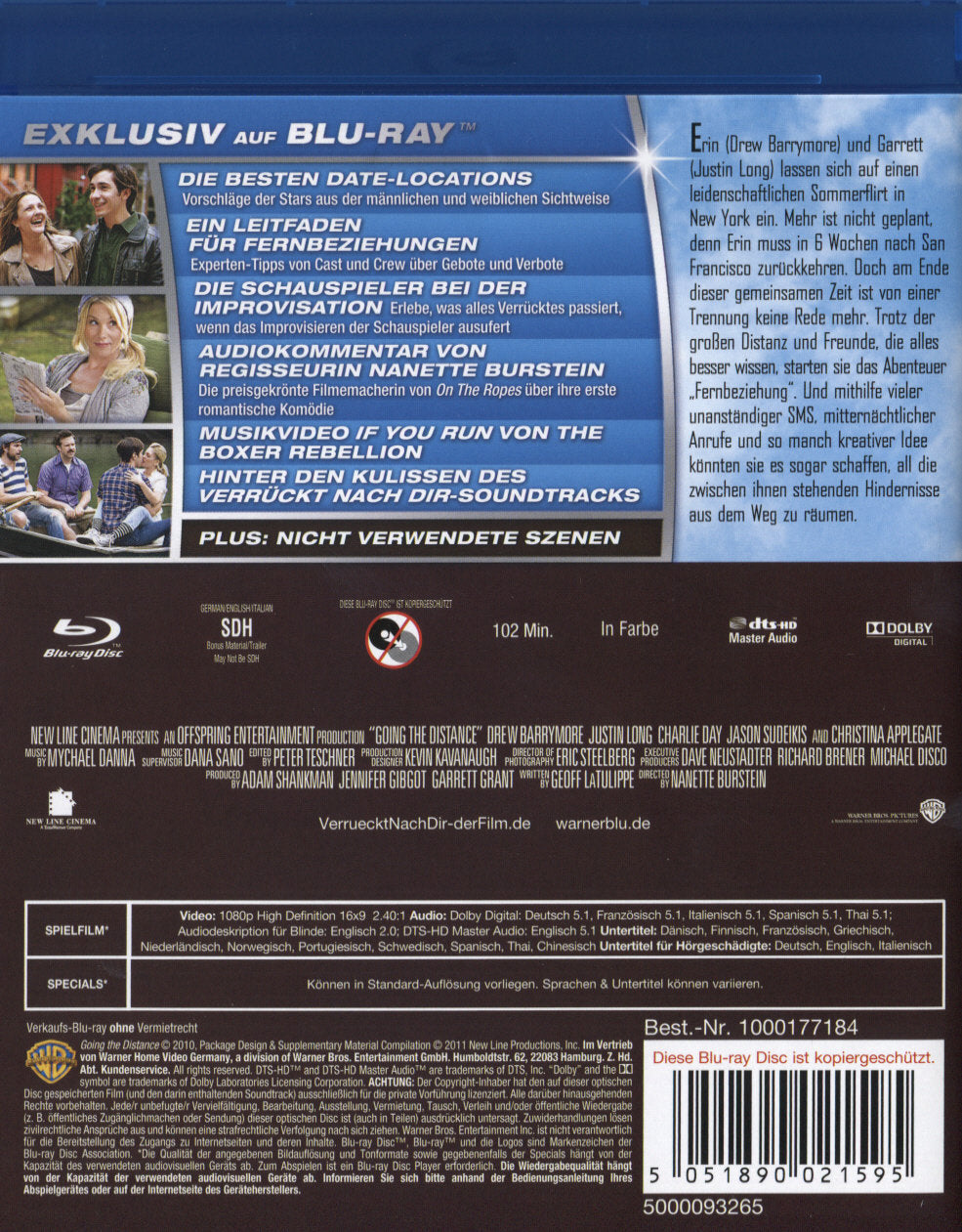 Enthält: Die besten Date-Locations; Ein Leitfaden für Fernbeziehungen; Die Schauspieler bei der Improvisation; Audiokommentar von Regisseurin Nanette Burstein; Musikvideo "If You Run" von The Boxer Rebellion; Hinter den Kulissen des verrückt nach Dir-Soundtracks; Nicht verwendete Szenen;
