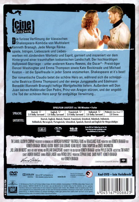 Frei nach William Shakespears komischer Romanze "Viel L�rm um nichts" inszenierte Kenneth Branagh das hinrei�end-�berm�tige Spiel um Liebe und Intrigen. Shakespear at its best - frisch, frech, romantisch und voller Humor. Die scharfz�ngigen Wortgefechte zwischen der sch�nen Beatrice und dem eingefleischten Junggesellen Benedikt suchen in der Filmgeschichte ihresgleichen.