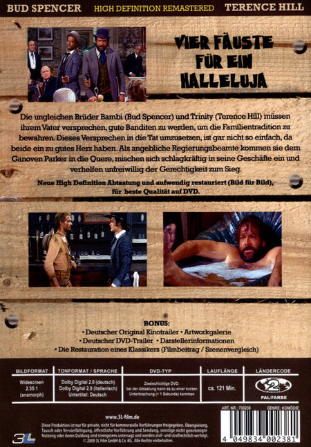 Selten ist der Wilde Westen so kräftig auf den Arm genommen worden, wie in diesem Film. Das sympathische Duo Bud Spencer/Terence Hill, deren Humor so schlagkräftig ist, wie die berühmten Fäuste, lehren ihre Gegner mit Rosenkranz und Revolver das Beten.