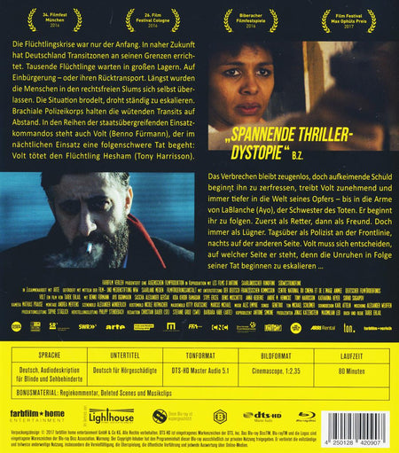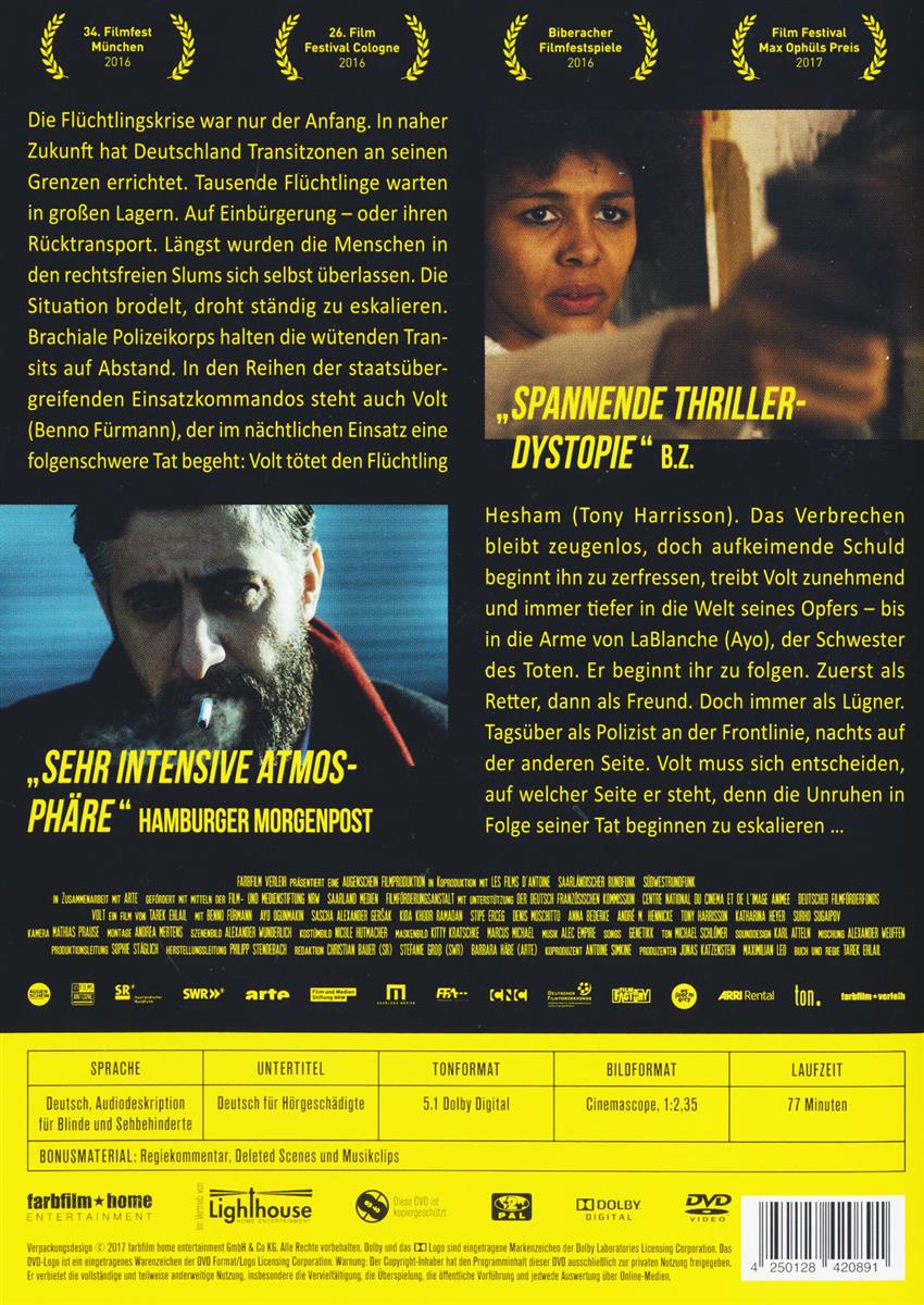 Die Flüchtlingskrise war nur der Anfang. In naher Zukunft hat Deutschland Transitzonen an seinen Grenzen errichtet. Tausende Flüchtlinge warten in großen Lagern. Auf Einbürgerung – oder ihren Rücktransport. Längst wurden die Menschen in den rechtsfreien Slums sich selbst überlassen. Die Situation brodelt, droht ständig zu eskalieren. Brachiale Polizeikorps halten die wütenden Transits auf Abstand. In den Reihen der staatsübergreifenden Einsatzkommandos steht auch Volt (Benno Fürmann), der im nächtlichen Einsatz eine folgenschwere Tat begeht: Volt tötet den Flüchtling Hesham (Tony Harrisson). Das Verbrechen bleibt zeugenlos, doch aufkeimende Schuld beginnt ihn zu zerfressen, treibt Volt zunehmend und immer tiefer in die Welt seines Opfers – bis in die Arme von LaBlanche (Ayo), der Schwester des Toten. Er beginnt ihr zu folgen. Zuerst als Retter, dann als Freund. Doch immer als Lügner. Tagsüber als Polizist an der Frontlinie, nachts auf der anderen Seite. Volt muss sich entscheiden, auf welcher Seite er steht, denn die Unruhen in Folge seiner Tat beginnen zu eskalieren …