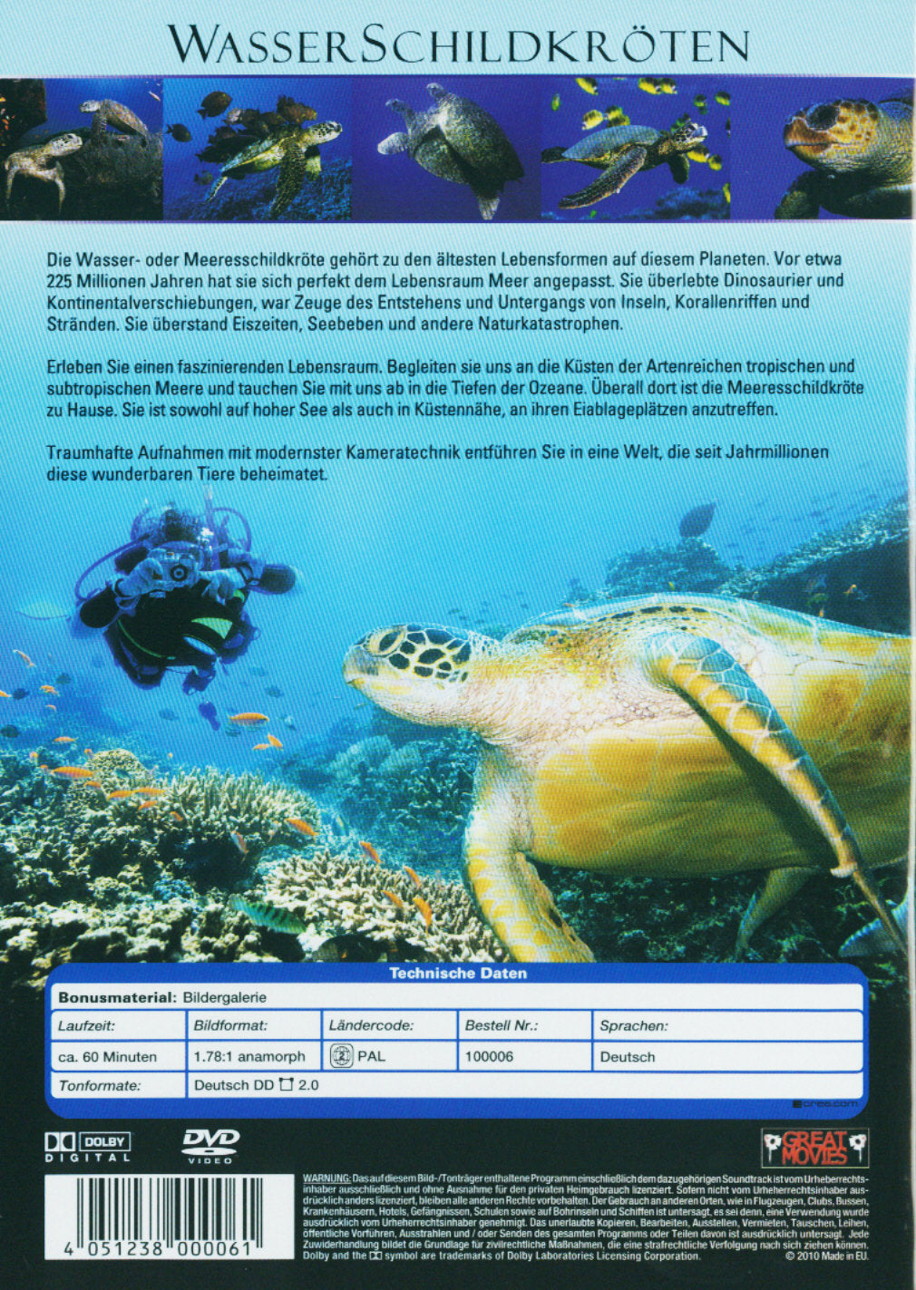 Erleben Sie einen faszinierenden Lebensraum. Begleiten Sie uns an die K�sten der artenreichen tropischen und subtropischen Meere und tauchen Sie mit uns ab in die Tiefen der Ozeane. �berall dort ist die Meeresschildkr�te zu Hause. Sie ist sowohl auf hoher See als auch in K�stenn�he, an ihren Eiablagepl�tzen anzutreffen.