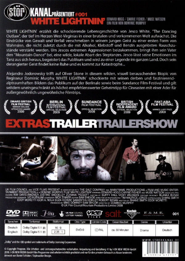 WHITE LIGHTNIN� erz�hlt die schockierende Lebensgeschichte von Jesco White, "The Dancing Outlaw", der tief im Herzen West-Virginias in einer brutalen und verkommenen Welt aufw�chst. Die Eindr�cke von Gewalt und Verfall verschmelzen in seinem jungen Geist zu einer ersten Form von Wahnsinn, die nicht zuletzt durch die mit Alkohol, Klebstoff und Benzin ausgel�sten Rauschzust�nde verst�rkt werden. Um Jescos extremen Agressionen beizukommen, bringt ihm sein Vater den "Mountain-Dance" bei, eine wilde, lokale Abart des Steptanzes. Jesco l�sst seine Emotionen im Tanz aus sich heraus, begeistert das Publikum und wird zu einer Legende im ganzen Land. Doch sein derangierter Geist findet keine Ruhe und es kommt zur Katastrophe...