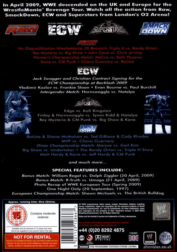 Enthält: Bonus Match: William Regal vs. Dolph Ziggler (20 April 2009); Bonus Match: R-Truth vs. Umaga (21 April 2009); Photo Recap of WWE European Tour (Spring 2009); One Night Only (20 September 1997); European Championship Match: Shawn Michaels vs. The British Bulldog;