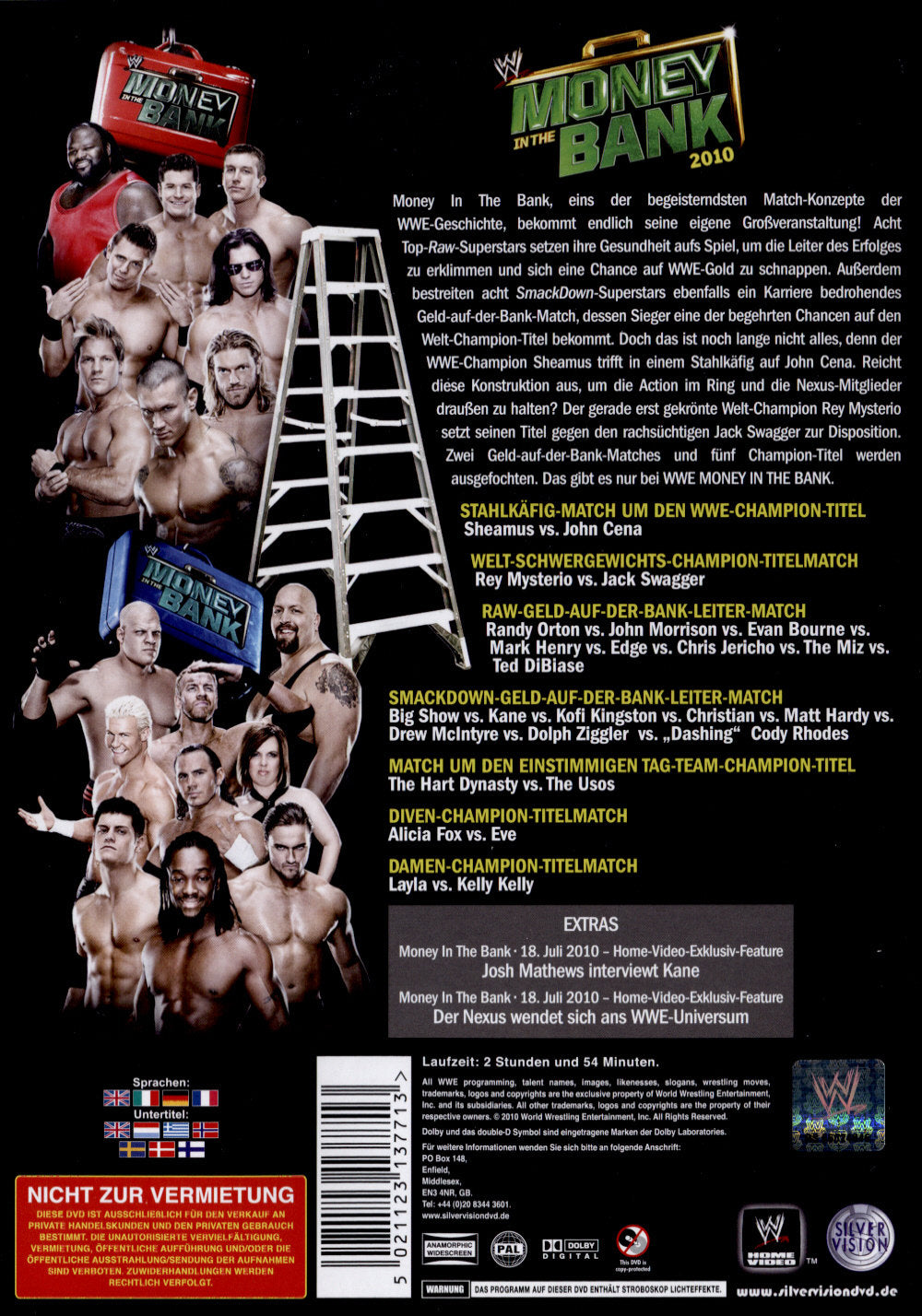 Enthält: Money In The Bank, 18. Juli 2010 - Home-Video-Exklusiv-Feature: Josh Mathews interviewt Kane; Money In The Bank, 18. Juli 2010 - Home-Video-Exklusiv-Feature: Der Nexus wendet sich ans WWE-Universum; Top Trumps Booster-Pack;