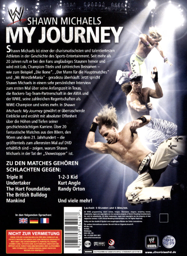 Shawn Michaels ist einer der charismatischsten und talentiertesten Athleten in der Geschichte des Sports-Entertainment. Seit mehr als 20 Jahren ruft er bei den Fans ungläubiges Staunen hervor und wird mit Lob, Champion-Titeln und zahlreichen Beinamen - wie zum Beispiel "Die Ikone", "Der Mann für die Hauptmatches" und "Mr. WrestleMania" - geradezu überhäuft. Jetzt spricht Shawn Michaels in einem sehr persönlichen Interview zum ersten Mal über seine Anfangszeit in Texas, die Rockers-Tag-Team-Partnerschaft in der AWA und der WWE, seine zahlreichen Regentschaften als WWE-Champion und vieles mehr. In Shawn Michaels: My Journey gewährt er überraschende Einblicke und erzählt mit absoluter Offenheit über die Höhen und Tiefen seiner geschichtsträchtigen Karriere. Über 20 fantastische Matches aus den 80ern, den 90ern und dem 21. Jahrhundert - die größtenteils zum allerersten Mal auf DVD erhältlich sind - zeigen, warum Shawn Michaels in der Tat der "Showstopper" ist.