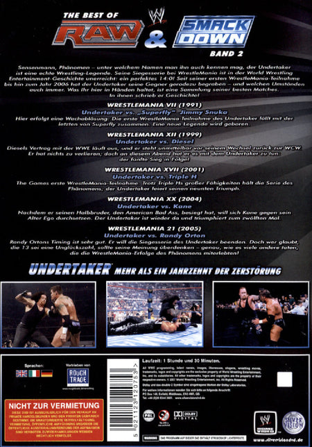 Sensenmann, Phänomen - unter welchem Namen man ihn auch kennen mag, der Undertaker ist eine echte Wrestling-Legende. Seine Siegesserie bei WrestleMania ist in der Worl Wrestling Entertainment-Geschichte unerreicht: ein perfektes 14:0! Seit seiner ersten WrestleMania-Teilnahme bis hin zum Jahr 2006 hat der Undertaker seine Gegner geradezu begraben - und welchen Umständen auch immer. Was Ihr hier in Händen haltet, ist eine Sammlung seiner besten Matches. In ihnen schrieb er Geschichte!