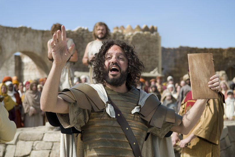 Seine neuerworbene Erleuchtung bringt ihn prompt in so gro�e Schwierigkeiten mit dem Rest seines Dorfes, dass er fliehen muss. Gemeinsam mit seinem Kumpel Oh, der sich Zed widerwillig anschlie�t, brechen die beiden Freunde auf zu einer abenteuerlichen Reise quer durch den Anbeginn der Zeitrechnung. Auf der Suche nach einer Antwort geraten sie - immer im denkbar ung�nstigsten Moment - in allerlei haarstr�ubende Situationen, die ihre wildesten Tr�ume �bertreffen, und verursachen dabei Katastrophen von wahrhaft biblischen Ausma�en.