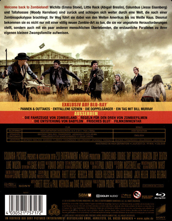Welcome back to Zombieland! Wichita (Emma Stone), Little Rock (Abigail Breslin), Columbus (Jesse Eisenberg) und Tallahassee (Woody Harrelson) sind zurück und schlagen sich weiter durch eine Welt, die nach einer Zombieapokalypse brachliegt. Ihr Weg führt sie dabei von den Weiten Amerikas bis ins Weiße Haus. Diesmal bekommen sie es nicht nur mit einer völlig neuen Zombie-Art zu tun, die sie vor ungeahnte Herausforderungen stellt, sondern auch mit ein paar anderen menschlichen Überlebenden, die erstaunliche Parallelen zu ihrer eigenen kleinen Zwangsfamilie aufweisen.